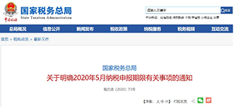 關(guān)于明確2020年5月納稅申報期限有關(guān)事項的通知稅總函〔2020〕73號